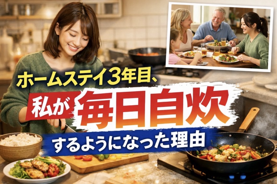 今回は、ホームステイ3年目で私が自炊を始めた理由と、現在のリアルな食生活について紹介します。